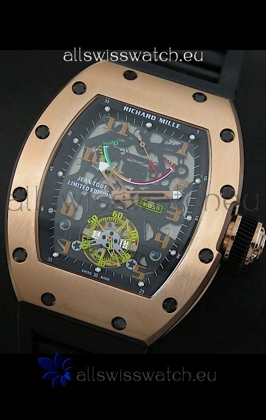 Richard Mille RM002 Power Reserve Tourbillon Swiss Replica Watch in Pink Gold Case