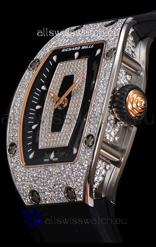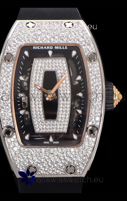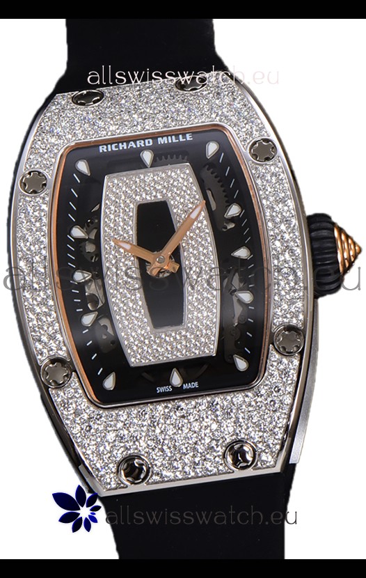 Richard Mille RM007 Diamonds Paved 904L Steel Automatic Superclone Swiss Replica Watch