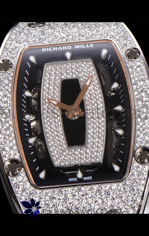 Richard Mille RM007 Diamonds Paved Black Dial 904L Steel Superclone Swiss Watch
