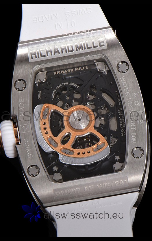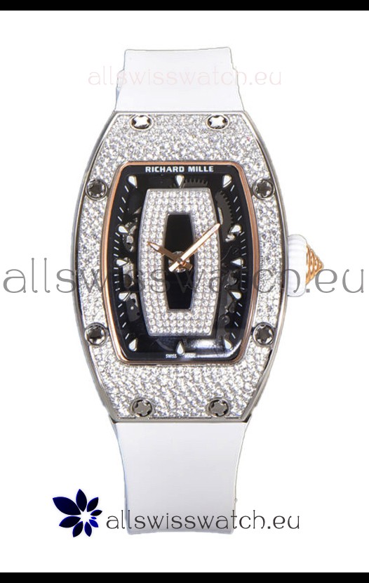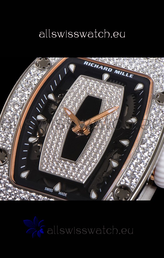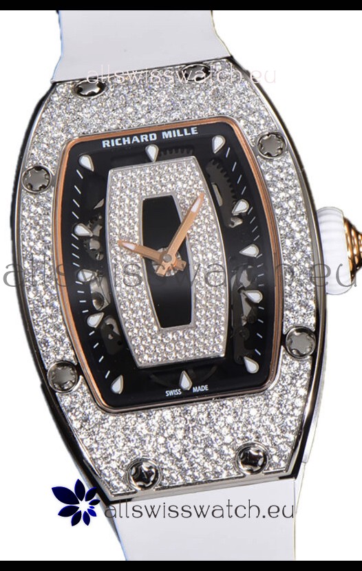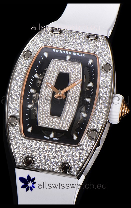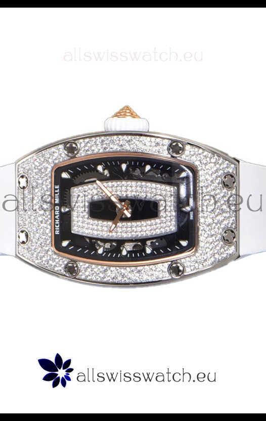 Richard Mille RM007 Diamonds Paved White Strap 904L Steel Superclone Swiss Watch