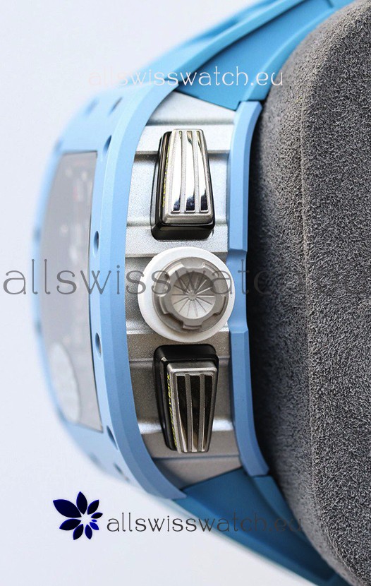 One Piece Lightweight Blue Ceramic Case and Ceramic Rear Casing complete with Richard Mille Markings/Engravings as per the Originals