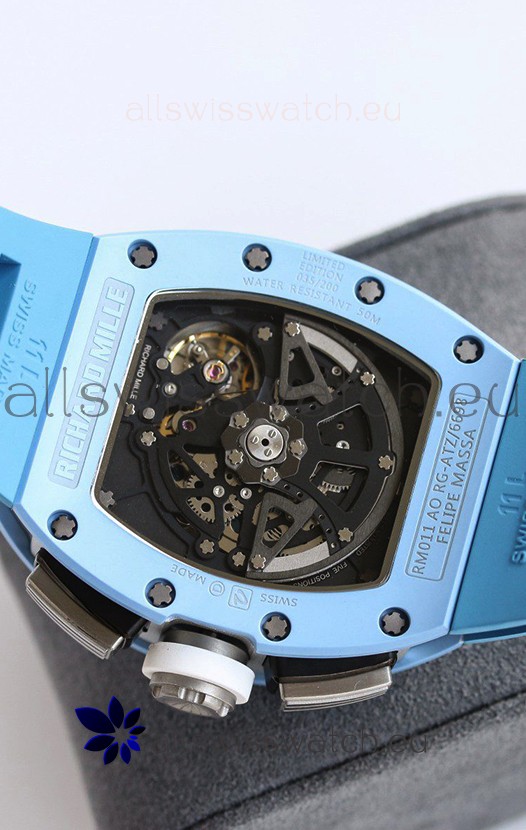 Richard Mille RM011 Blue Ceramic Casin Blue Rubber Strap 1:1 Mirror Swiss Replica Watch