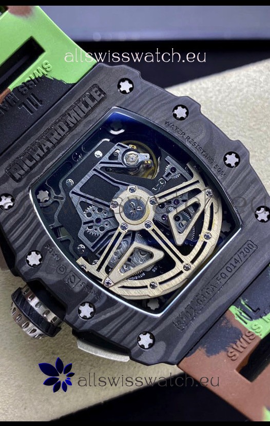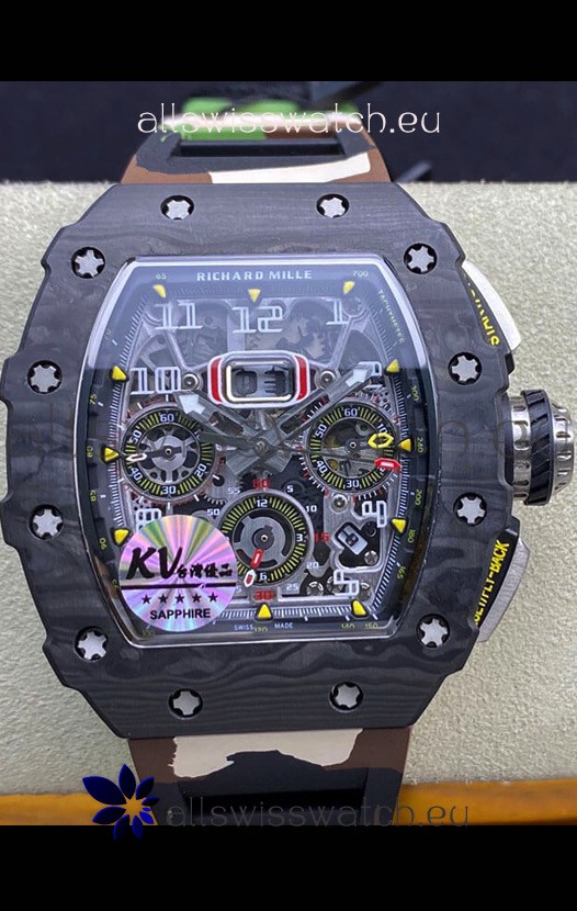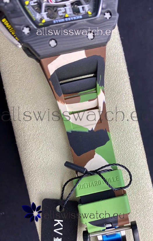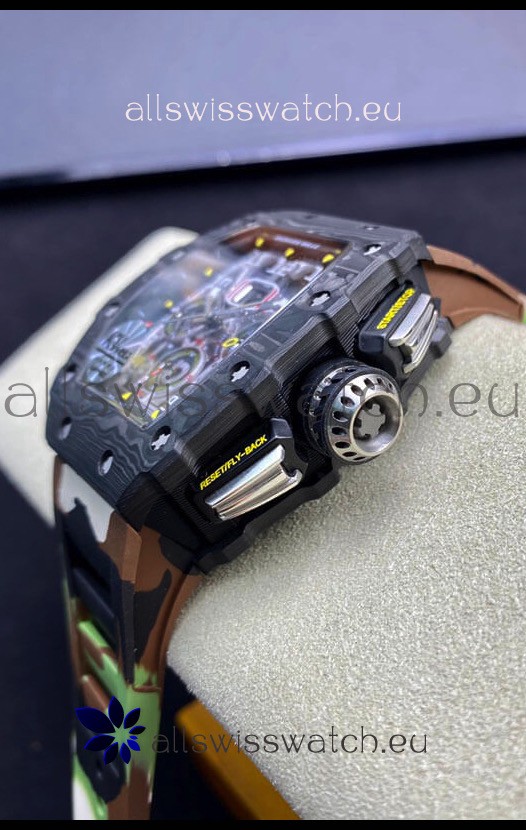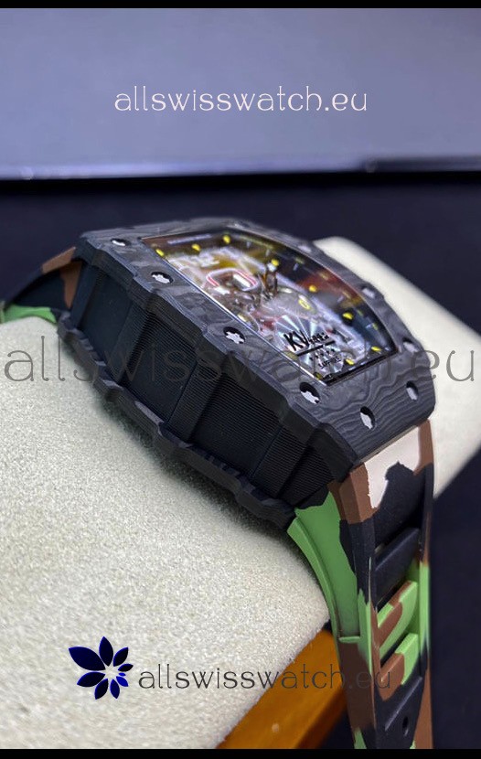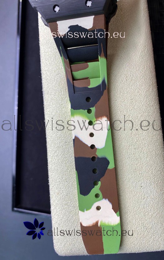 Richard Mille RM011 Felipe Massa 1:1 Mirror Quality One Piece Black Forged Carbon Case Watch in CAMO Strap