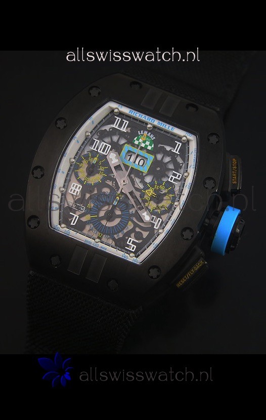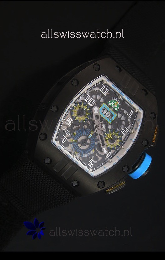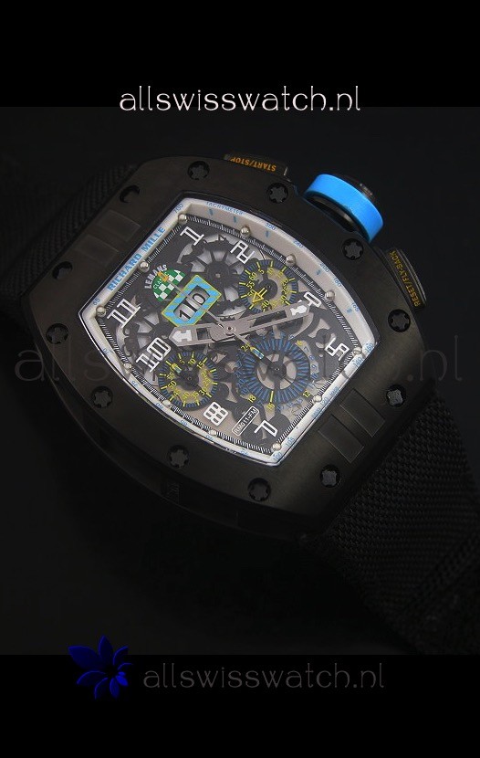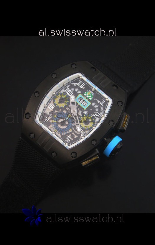 Richard Mille RM011 Filipe Massa PVD Swiss Replica Watch in Black Nylon Strap