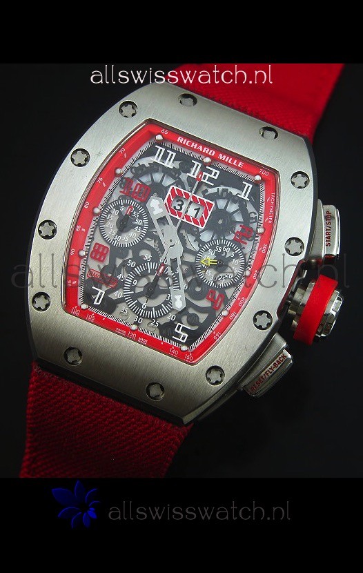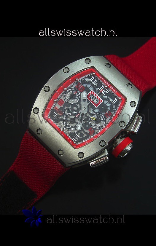 Richard Mille RM011 Filipe Massa Titanium Case Swiss Replica Watch in Red Nylon Strap