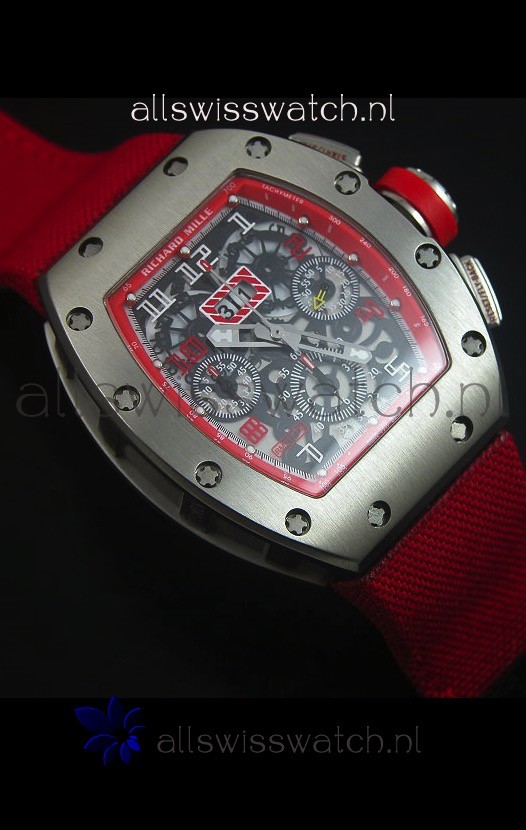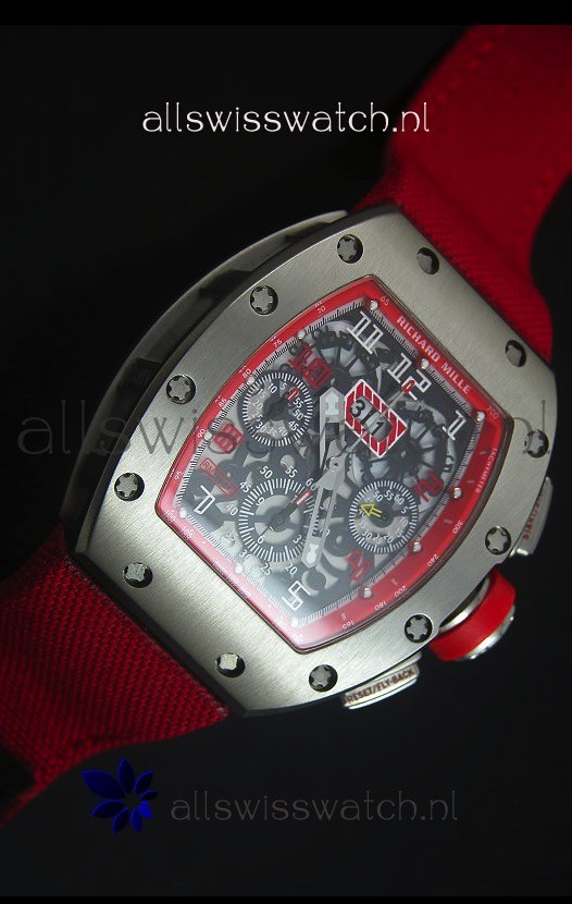 You're reviewing: Richard Mille RM011 Filipe Massa Titanium Case Swiss Replica Watch in Red Nylon Strap