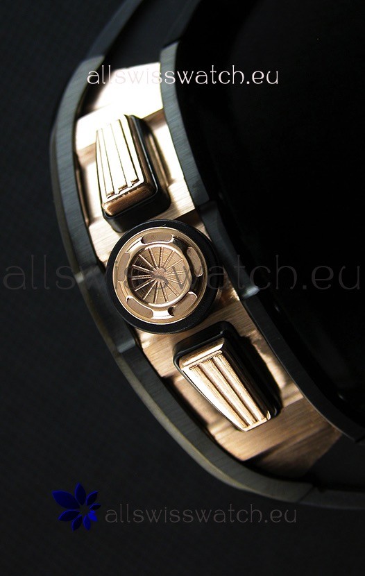 One Piece Ceramic Case in Black Color. Pink Gold Screws.