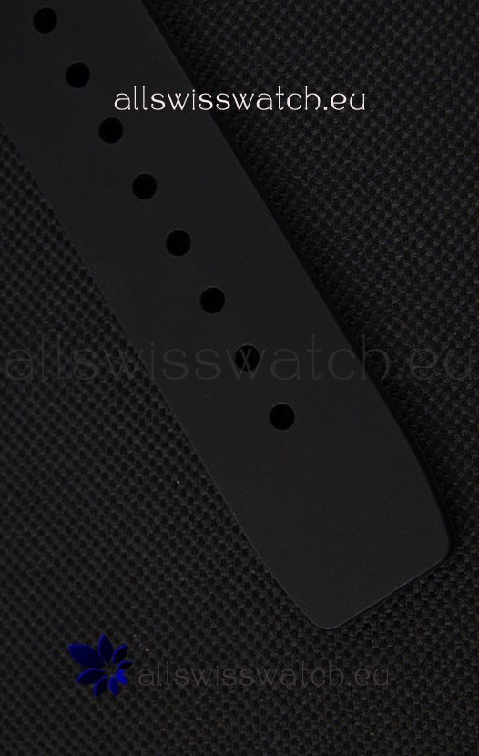 Black Vented Rubber Strap with Folding Clasp with DLC Coating