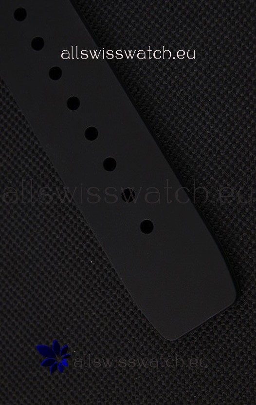Black Vented Rubber Strap with Folding Clasp with DLC Coating