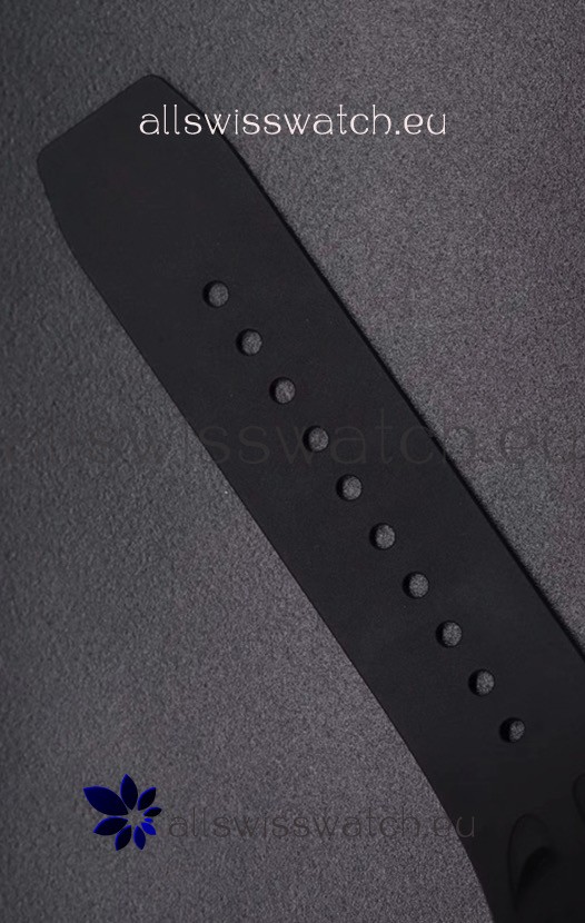 Black Vented Rubber Strap with Folding Clasp with Rose Gold Coating