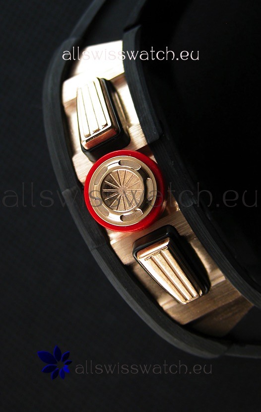 One Piece Full Forged Carbon Case in Black Color. Pink Gold Plated Screws.
