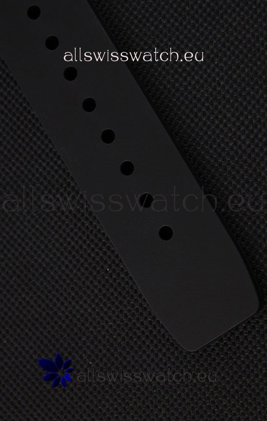 Black Vented Rubber Strap with Folding Clasp with DLC Coating