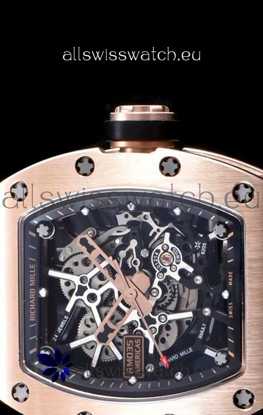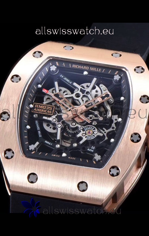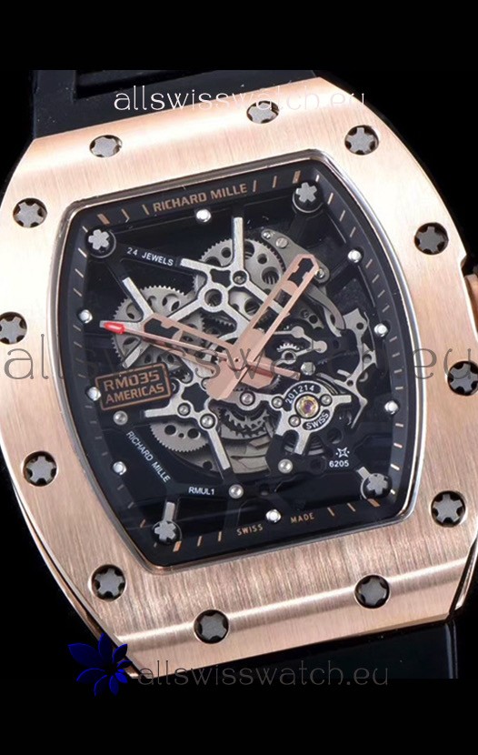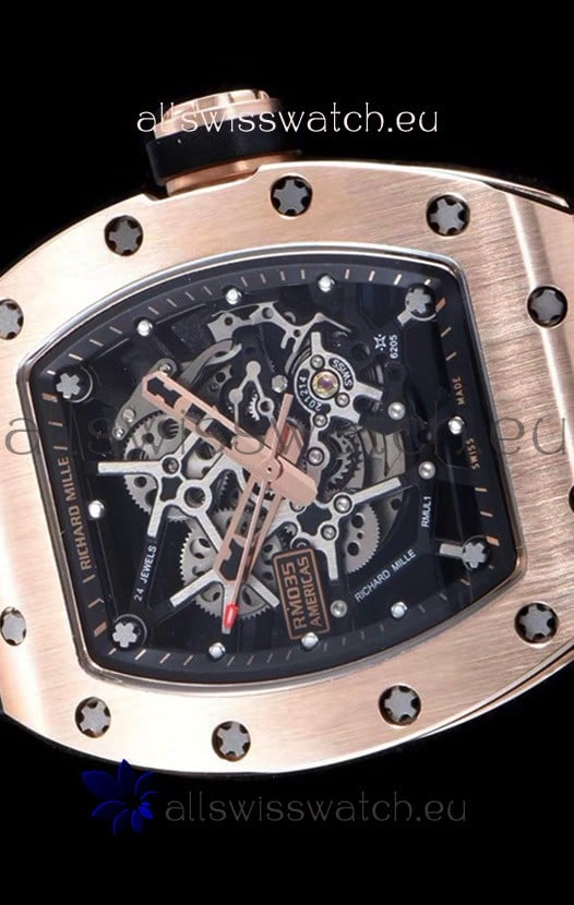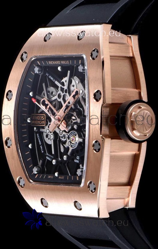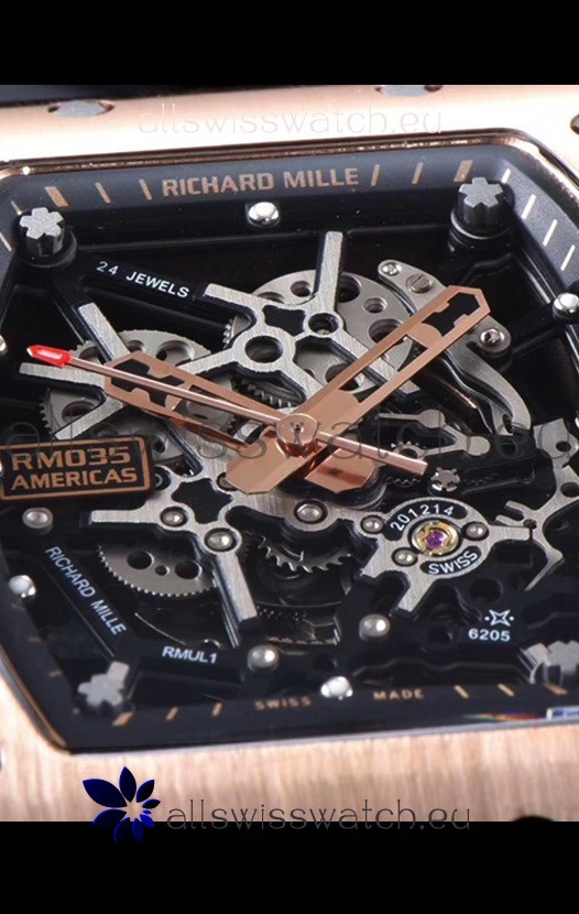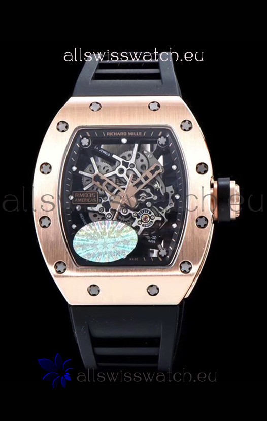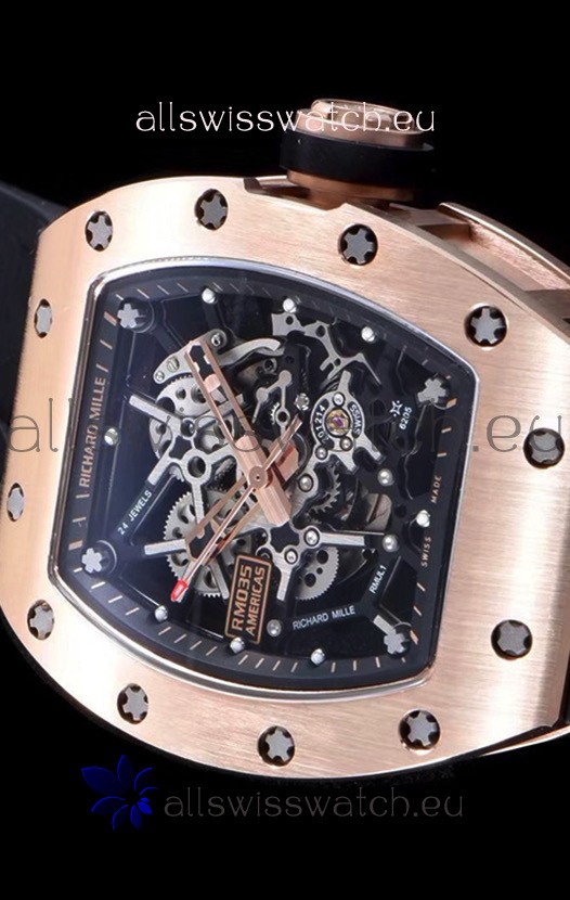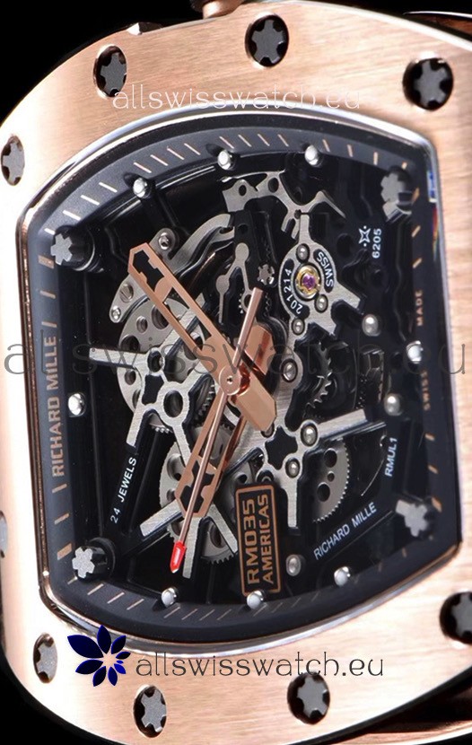 Richard Mille RM035 AMERICAS 18K Rose Gold Replica Watch in Black Strap