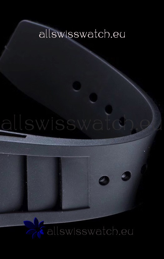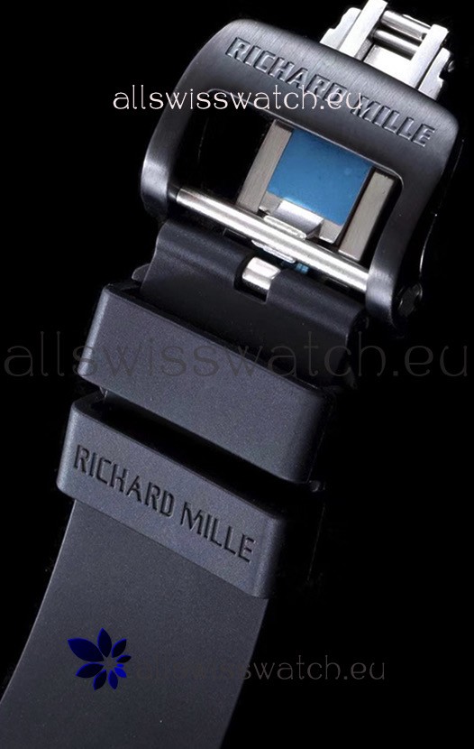 Black Vented Rubber Strap with 18K Rose Gold Plated Clasp complete with Richard Mille Markings and Engravings