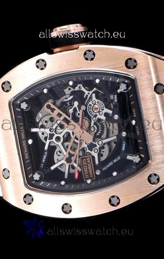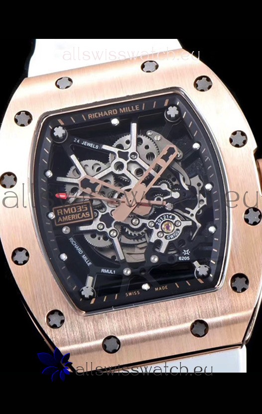 You're reviewing: Richard Mille RM035 AMERICAS 18K Rose Gold Replica Watch in White Strap