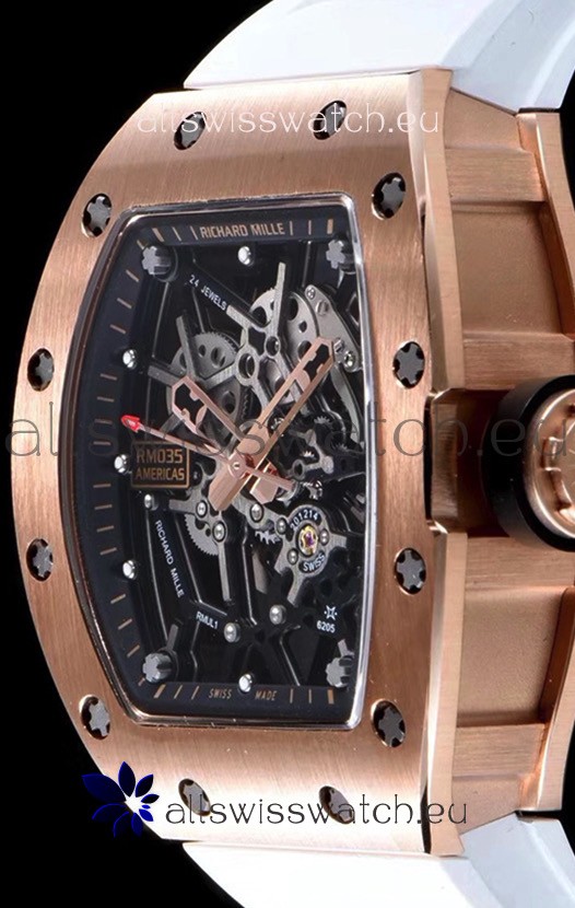 Richard Mille RM035 AMERICAS 18K Rose Gold Replica Watch in White Strap