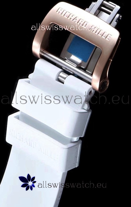White Vented Rubber Strap with 18K Rose Gold Plated Clasp complete with Richard Mille Markings and Engravings