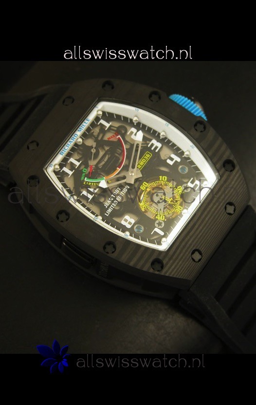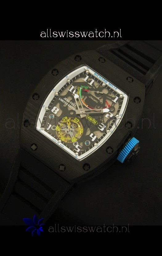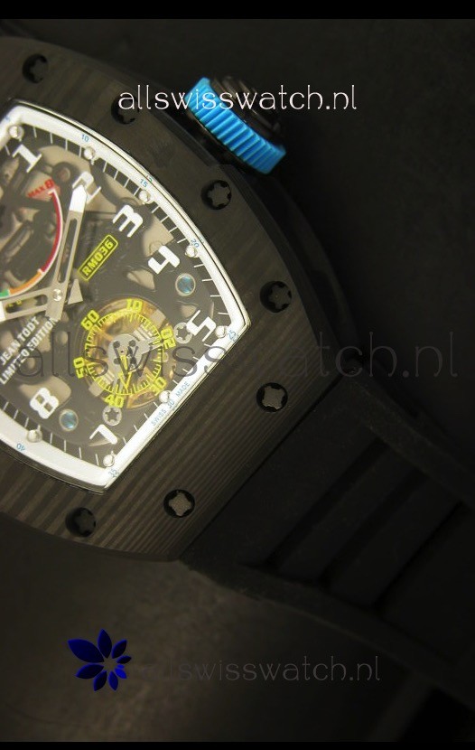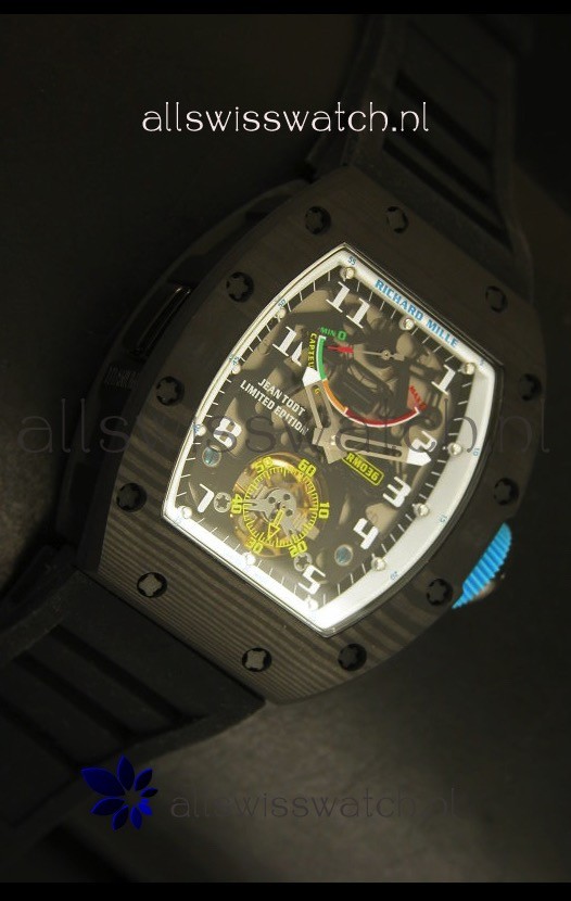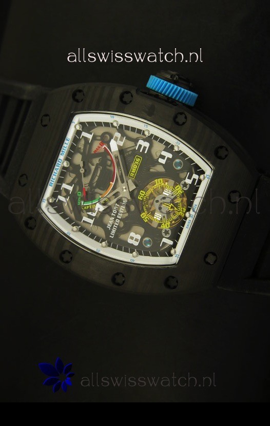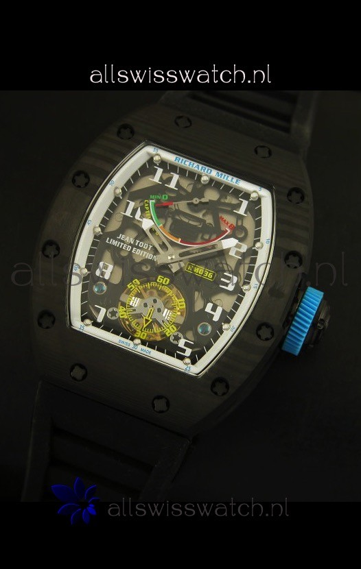 Get the best Richard Mille RM036 Jean Todt Forged Carbon Bezel Titanium Watch - All White/Blue Editionat allswisswatch.eu