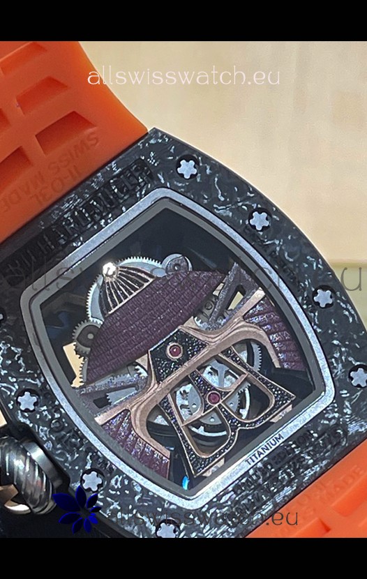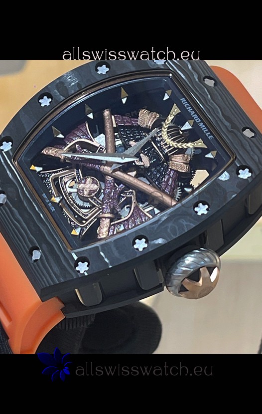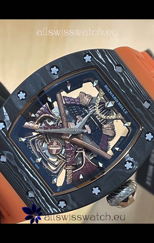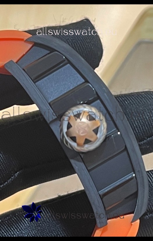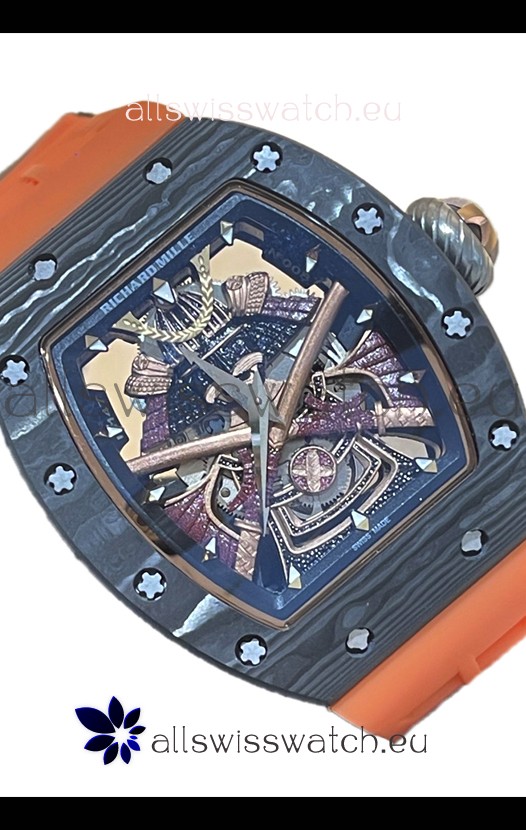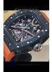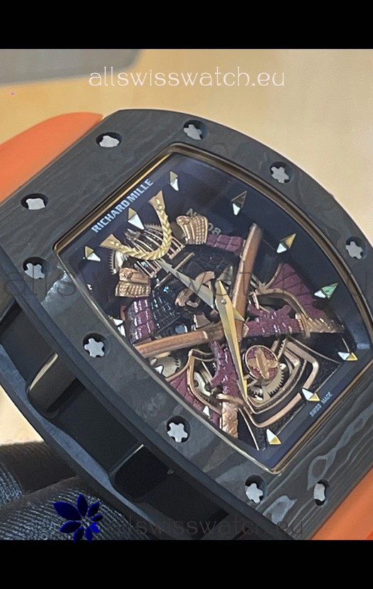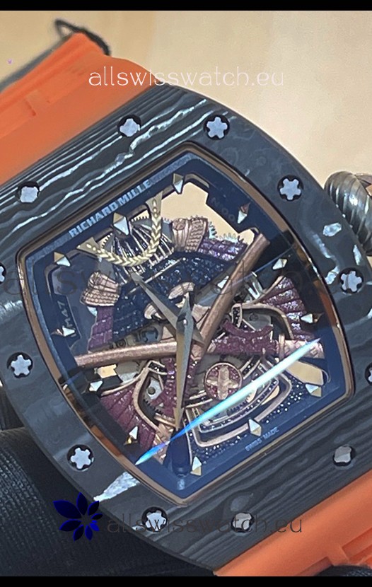 Richard Mille RM047 Samurai Genuine Tourbillon Watch in Carbon Casing Orange Strap