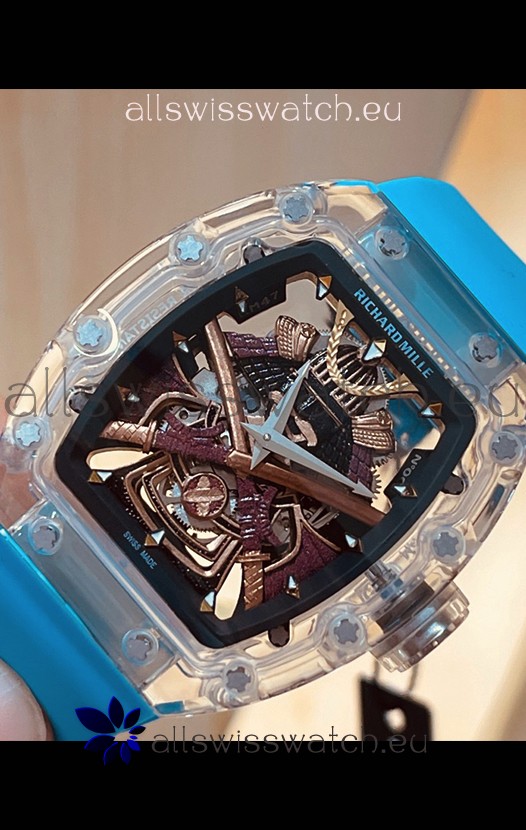 Richard Mille RM047 Samurai Genuine Tourbillon Watch in Sapphires Casing Blue Strap