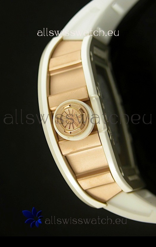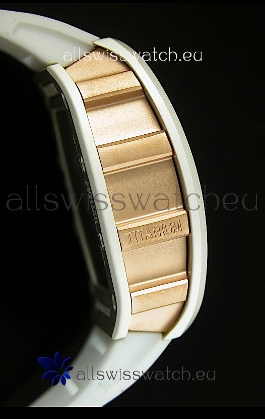 Genuine Sandblasted Brushed Ceramic Case with Pink Gold Plating on Titanium Case Sides