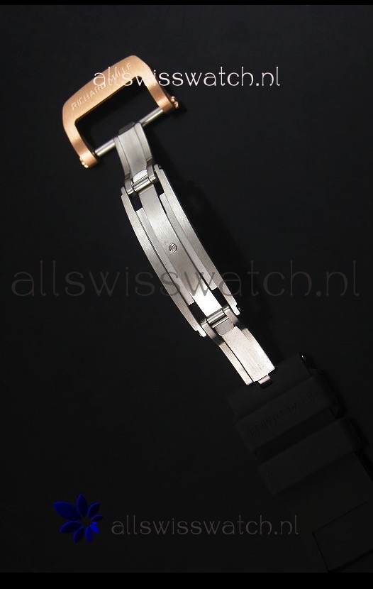 Black Rubber Strap with Steel Folding Clasps complete with Richard Mille Markings and Engravings
