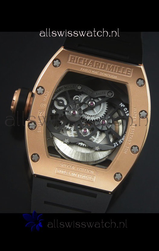 Richard Mille RM053 Tourbillon Pablo Mac Donough Pink Gold Case Black Strap Swiss Watch