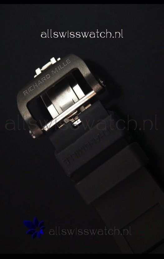 Black Rubber Strap with Steel Folding Clasps complete with Richard Mille Markings and Engravings