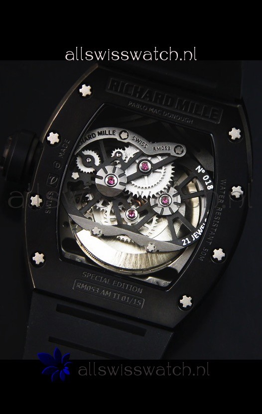 Richard Mille RM053 Tourbillon Pablo Mac Donough Swiss Replica Watch in PVD Case Black Strap
