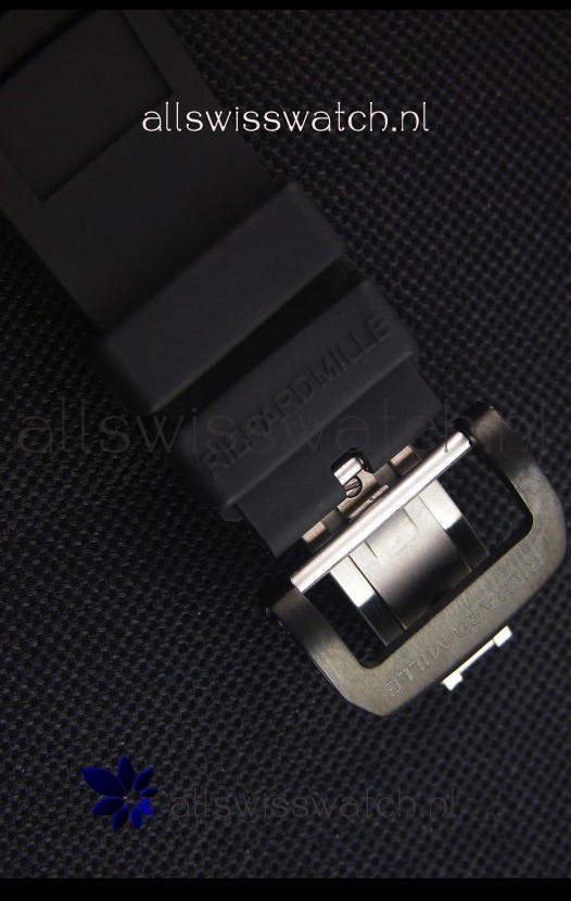 Black Rubber Strap with Steel Folding Clasps complete with Richard Mille Markings and Engravings