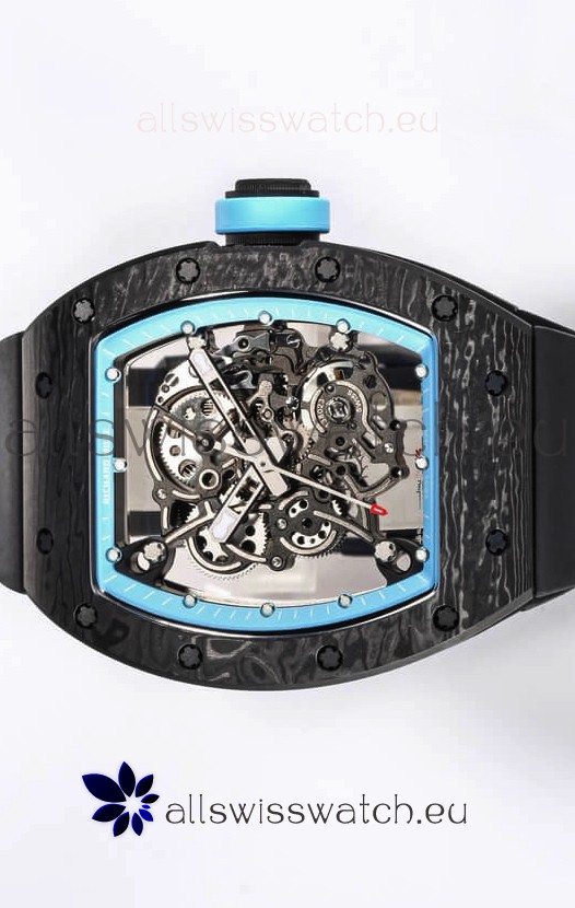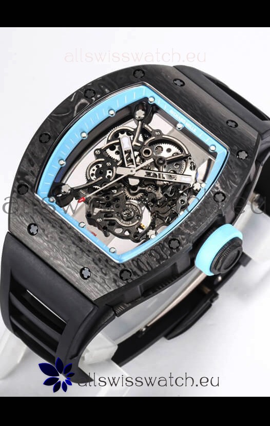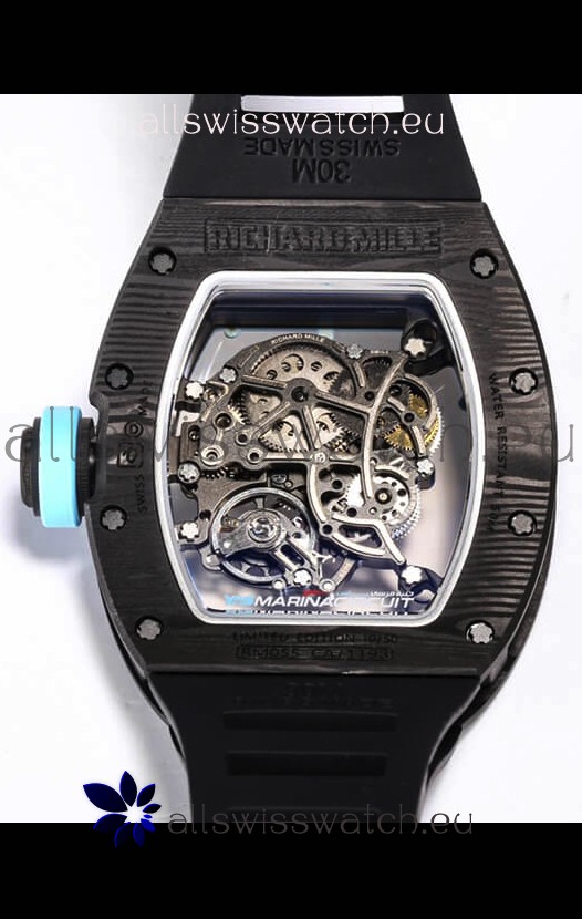 Richard Mille RM055 Black Carbon Casing 1:1 Mirror Replica Watch in Black Strap
