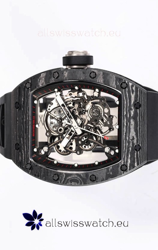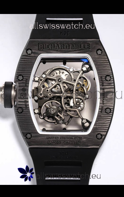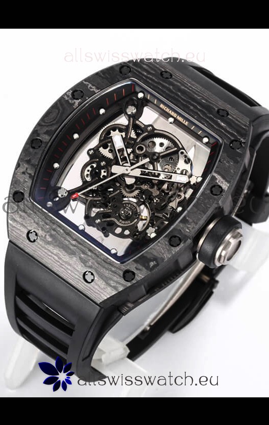 Richard Mille RM055 Black Carbon Casing 1:1 Mirror Replica Watch in Black Strap