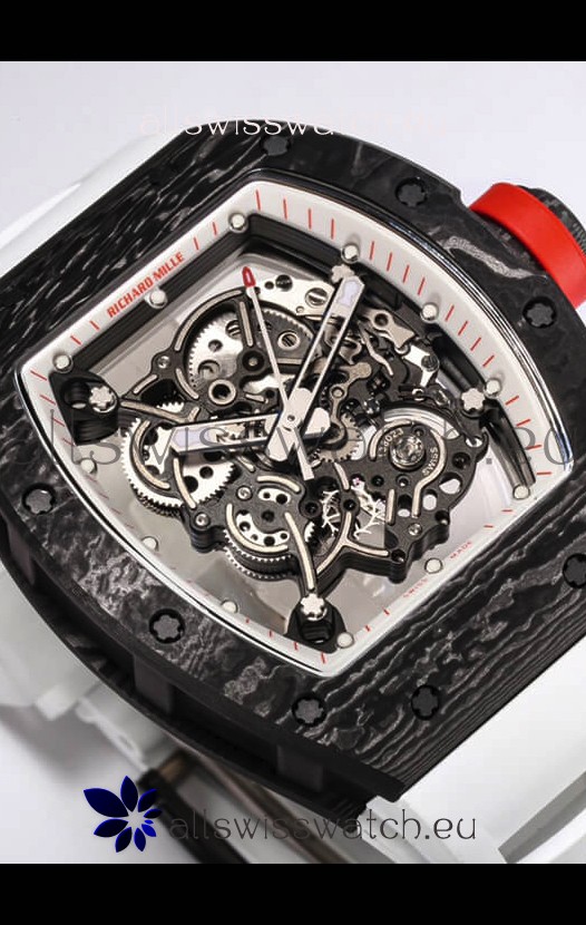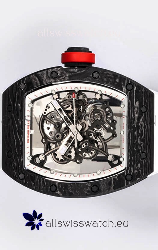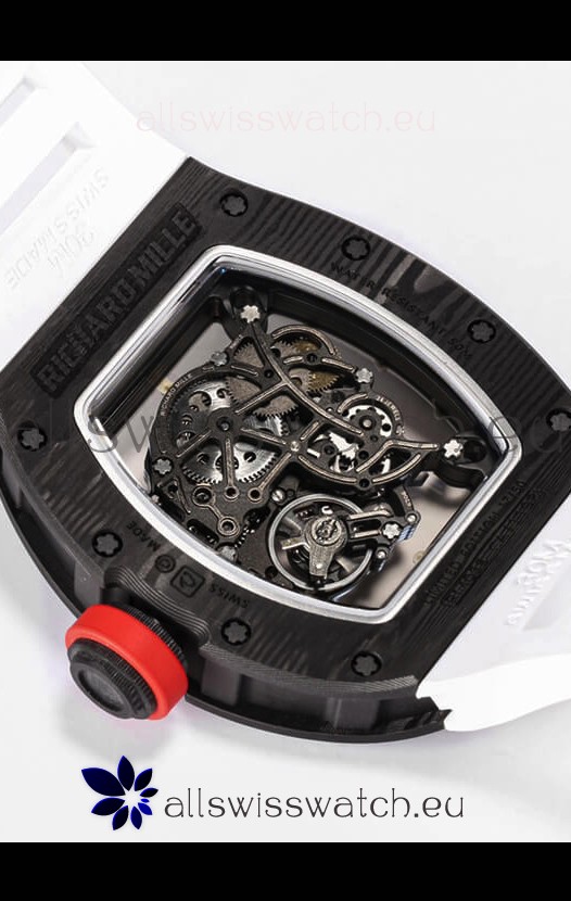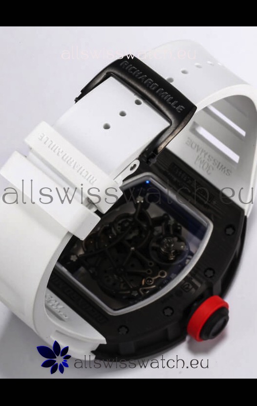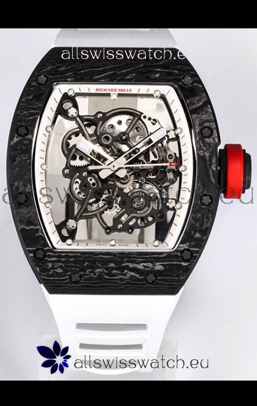 Richard Mille RM055 Black Carbon Casing 1:1 Mirror Replica Watch in White Strap