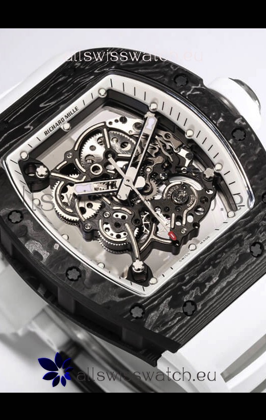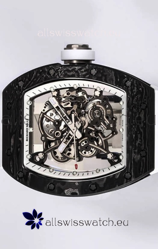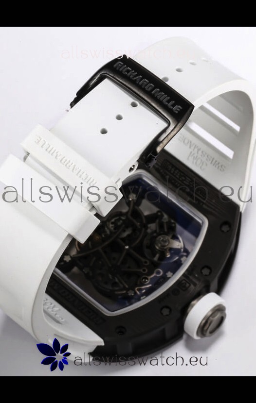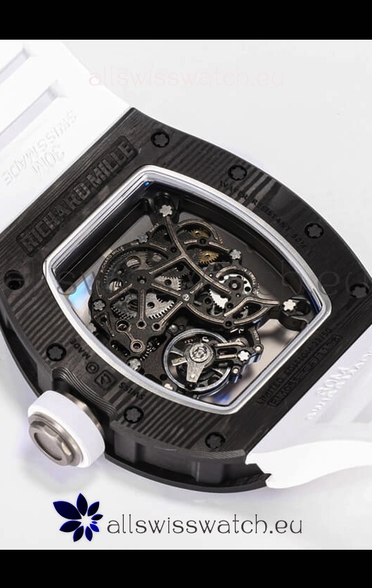 Richard Mille RM055 Black Carbon Casing 1:1 Mirror Replica Watch in White Strap