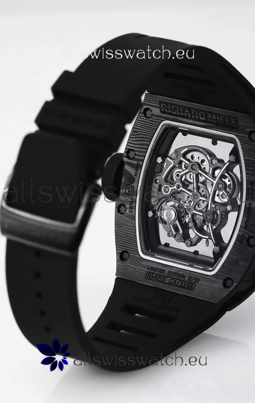 You're reviewing: Richard Mille RM055 Black Carbon Casing Black Rubber 1:1 Superclone Genuine Tourbillon Watch