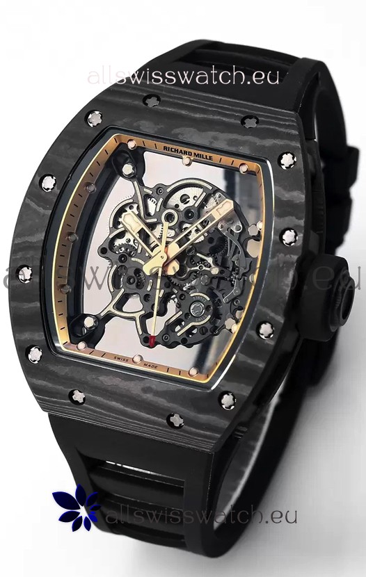 Richard Mille RM055 Black Carbon Casing Black Rubber 1:1 Superclone Genuine Tourbillon Watch