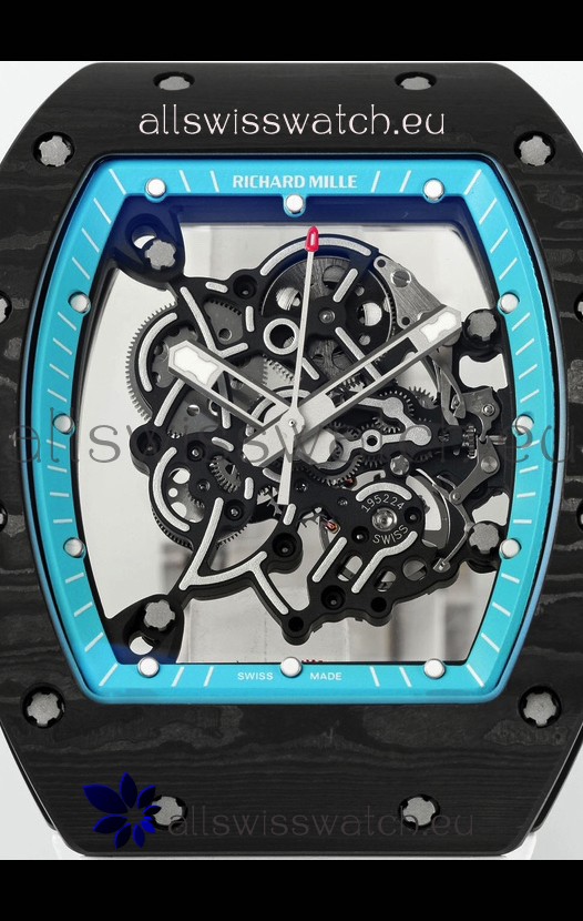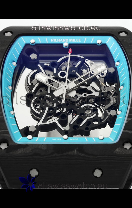 Richard Mille RM055 Black Carbon Casing Blue Rims 1:1 Superclone Genuine Tourbillon Watch