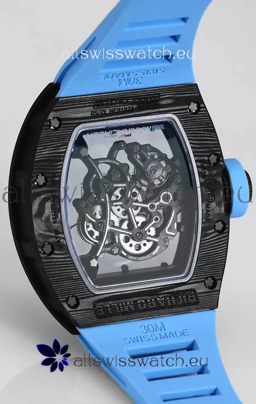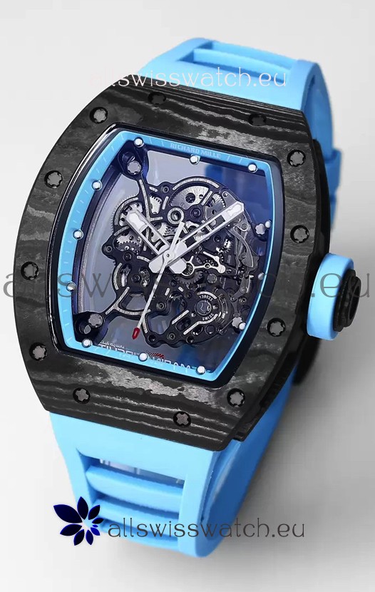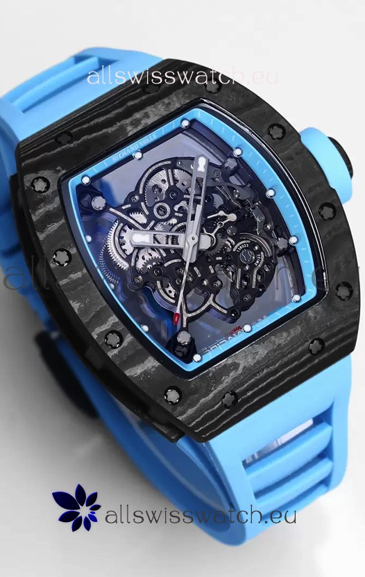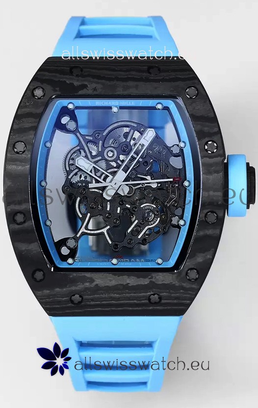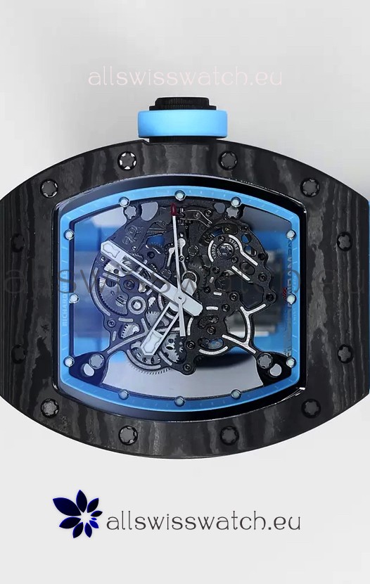 Richard Mille RM055 Black Carbon Casing Blue Rubber 1:1 Superclone Genuine Tourbillon Watch