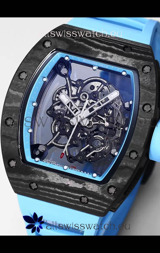 You're reviewing: Richard Mille RM055 Black Carbon Casing Blue Rubber 1:1 Superclone Genuine Tourbillon Watch