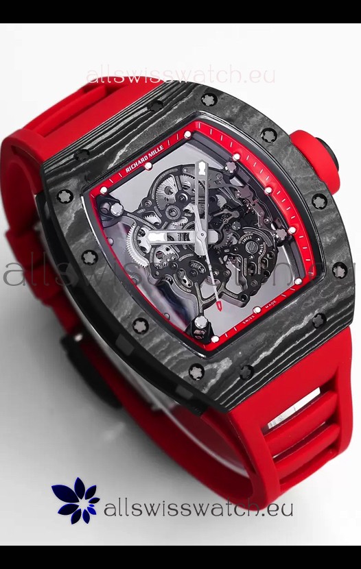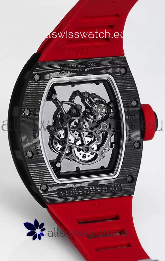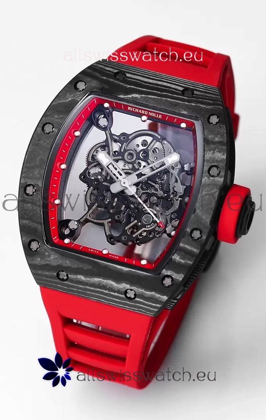 Richard Mille RM055 Black Carbon Casing Red Rubber 1:1 Superclone Genuine Tourbillon Watch