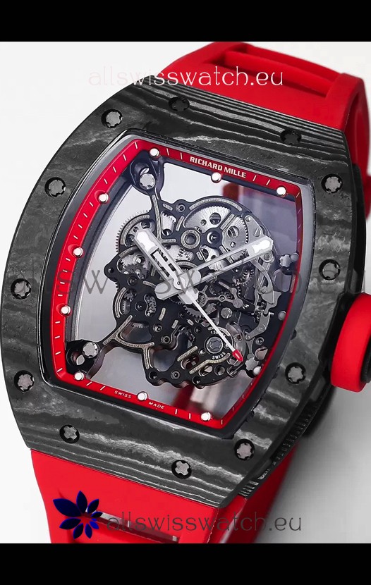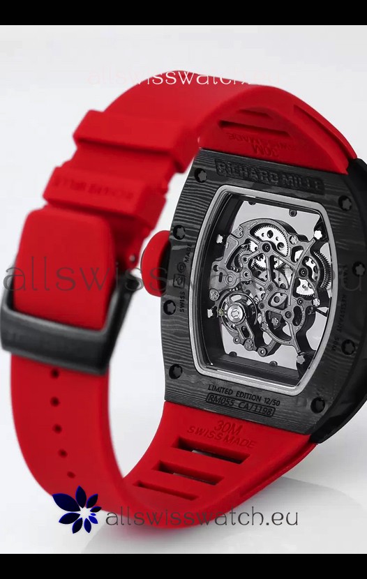 You're reviewing: Richard Mille RM055 Black Carbon Casing Red Rubber 1:1 Superclone Genuine Tourbillon Watch