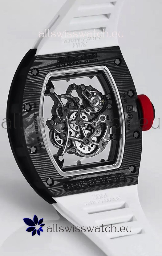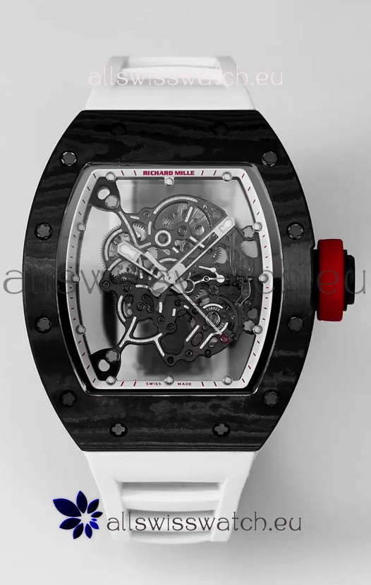 You're reviewing: Richard Mille RM055 Black Carbon Casing White Rubber 1:1 Superclone Genuine Tourbillon Watch