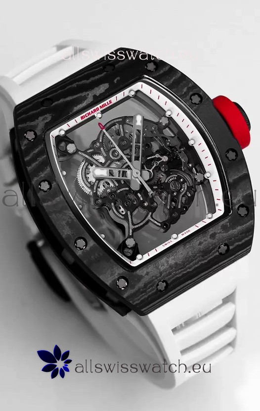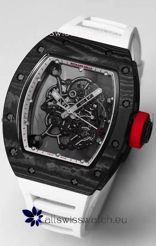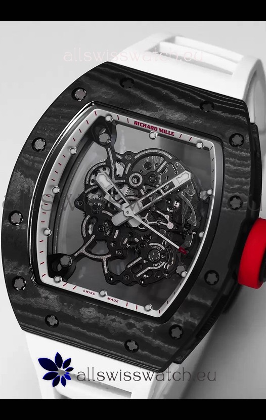 Richard Mille RM055 Black Carbon Casing White Rubber 1:1 Superclone Genuine Tourbillon Watch