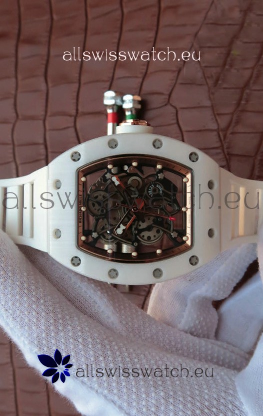 You're reviewing: Richard Mille RM055 Ceramic Casing 1:1 Mirror Replica Watch in Rose Gold Dial in White Strap