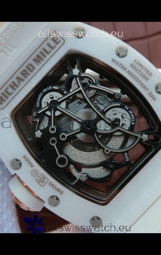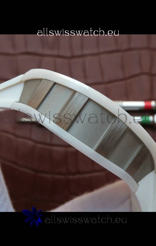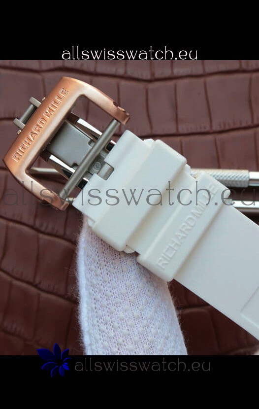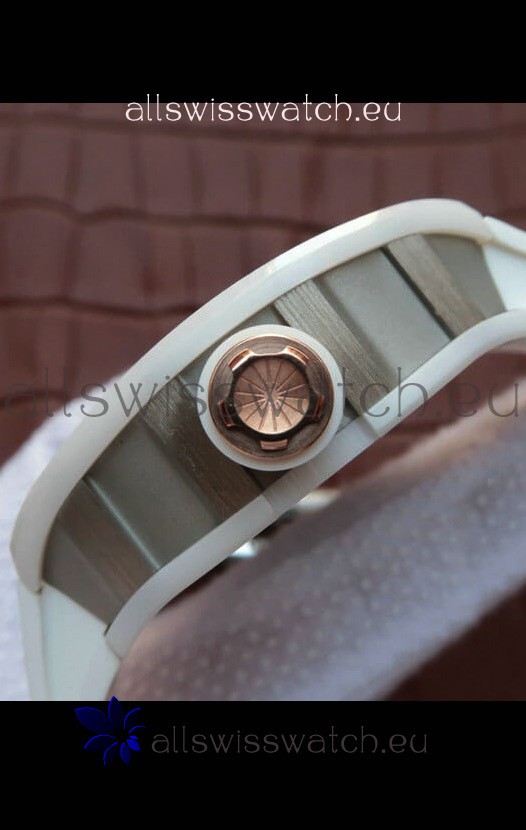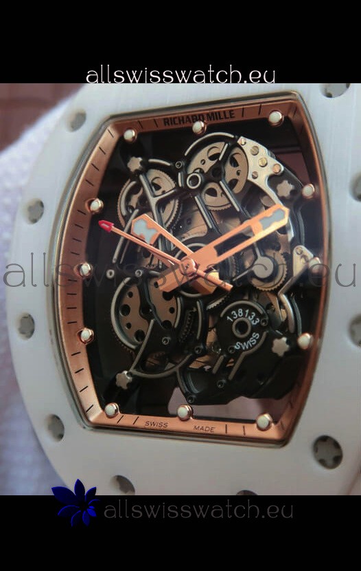 Richard Mille RM055 Ceramic Casing 1:1 Mirror Replica Watch in Rose Gold Details in White Strap