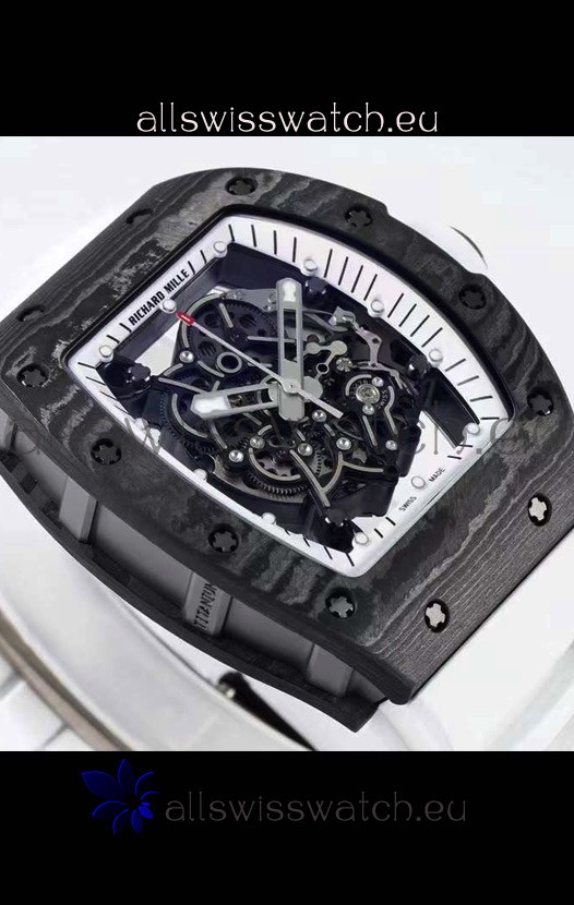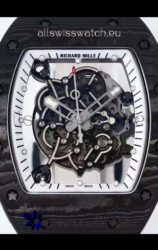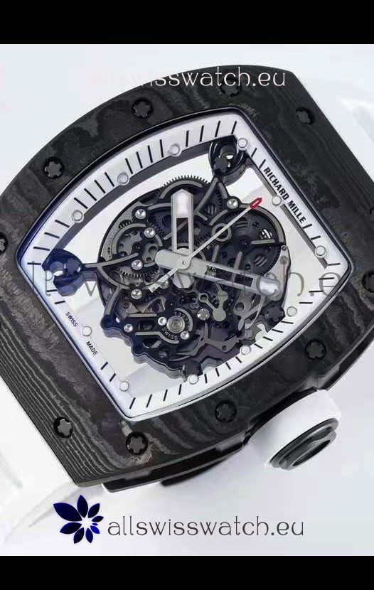 You're reviewing: Richard Mille RM055 Forged Carbon Casing 1:1 Mirror Replica Watch in White Strap