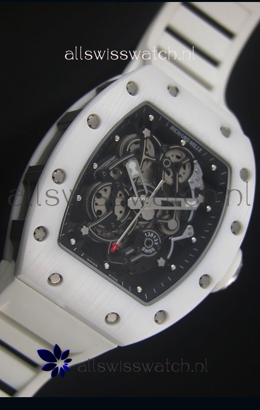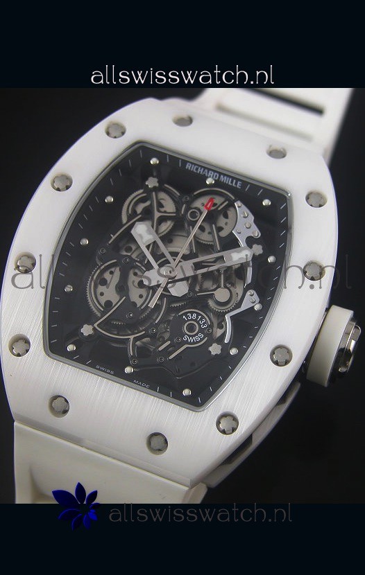 Richard Mille RM055 White Ceramic Case Watch in Black Inner Bezel