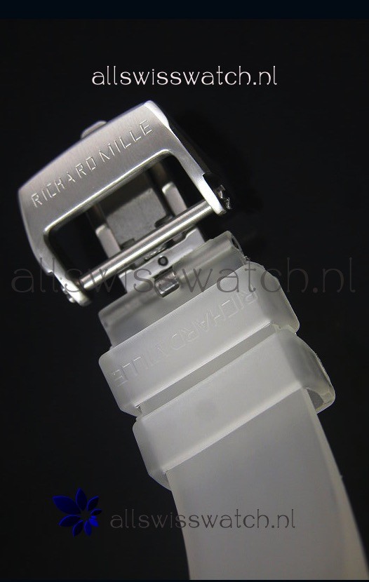 Genuine Clear Dust Repellent Black Rubber Strap with Folding Clasp complete with Richard Mille Markings an Engravings