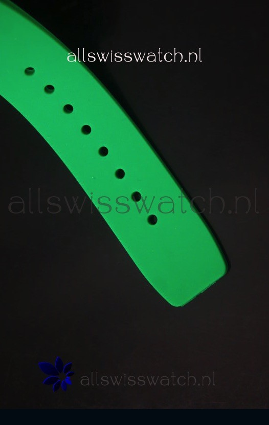 Genuine Green Dust Repellent Black Rubber Strap with Folding Clasp complete with Richard Mille Markings an Engravings