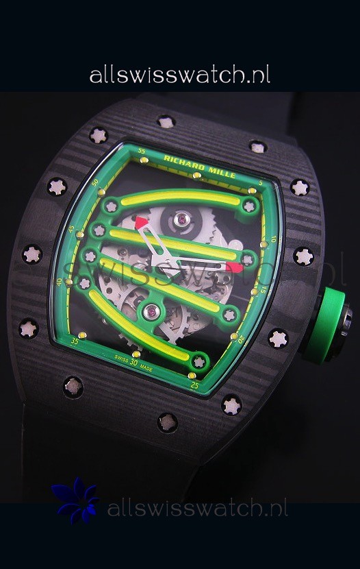 You're reviewing: Richard Mille RM059 Yohan Blake Forged Carbon Case Swiss Replica Watch in Green Bezel